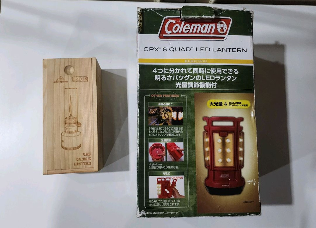 캠핑문 가스랜턴 세트 충전식 미니가스통 포함이며 가스통에는 생활스크레치 있습니다. 충전해서 가스버너 연결해서 쓰면 라면하나정도는 끓일수 있습니다. 전용 케이스에 보관중입니다. 콜맨 CPX6 LED 랜턴 D형건전지 포함이고 4개로 개별 분리되고 불밝기 2단계로 조정됩니다. 건전지 케이스고정장치가 파손되었지만 사용시에는 문제 없습니다. 일괄 가격입니다.
