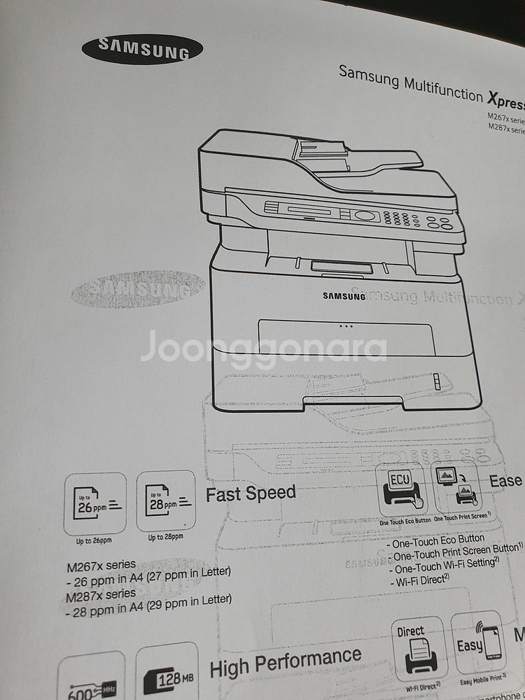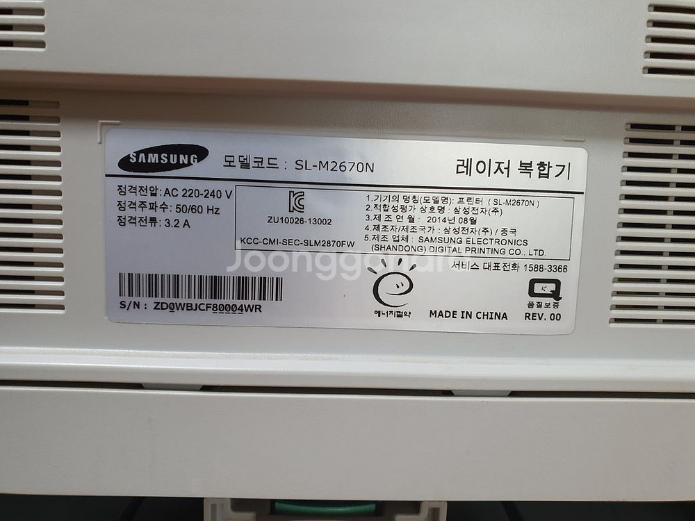 안녕하세요~~ 잘 사용했던 복합기 SL-M2670N 입니다. 프린터, 복사, 스캔되는 모델입니다. 전선, 케이블은 없습니다. 본체만입니다. 얼마전부터 잔상 인쇄가 되서 고장으로 생각됩니다. (인쇄물참고) MLT-D115L 재생토너는 대략 80% 정도 남아 있습니다. 생활기스는 있으며, 파손은 없습니다. 오래되다 보니 소리도 좀 크긴합니다. 부품용으로 올립니다. 민감하신 분은 패스 해주세요.