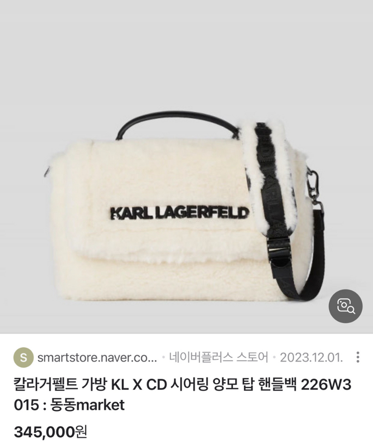 칼 라거펠트 KL X CD 시어링 양모 탑 핸들백 226W3015 새상품입니다! - 사이즈: 폭 약 29cm, 높이 약 20cm, 깊이 약 10cm - 무게: 약 350g - 색상: 크림 화이트(크림) - 소재: 폴리에스테르 65%, 폴리우레탄 35% - 구매 가격은 345,000원입니다 택배 선불 4천원 인천 직거래 가능