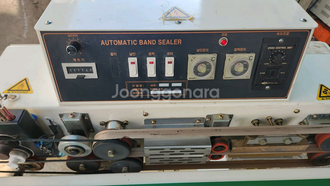 수평형 밴드실러 노즐형 / 밴드실러 / 비닐접착기 / 실링기 / 한국포장기계 날인기능 있습니다 인자기 하고 고체 잉크 있습니다 상태양호하고 작동 잘됩니다 110만원 입니다(운임비 별도) 경기도 광주