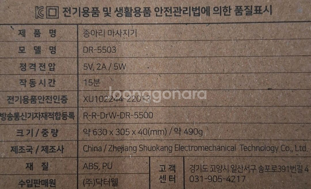 코스트코에서 판매하는 "닥터웰 무선 종아리 마사지기(DR-5503)"입니다. 단순개봉 상품으로 입고 과정에서 박스가 조금 훼손된 제품이 발송될 수 있으니 참고 부탁드립니다. 제품 상세사진과 스펙 사진 참고 부탁드립니다. # 품명 닥터웰 무선 종아리 마사지기(DR-5503) # 제품특징 -360도 3D 입체 디자인 2개의 강력한 에어 셀 -자유롭게 벨크로를 조절하여 내 몸에 맞게 공기압 조절 가능 -온열 기능/3단계 모드/3단계 강도 조절 -컨트롤러 단독으로 좌/우 각각 사용이 가능한 환경에 따른 다양한 활용성 택배 가능 남양주 별내 직거래 가능