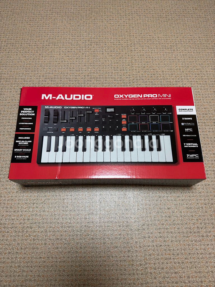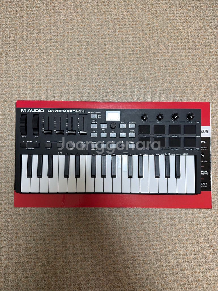 엠오디오 마스터키보드겸 컨트롤러 Oxygen Pro Mini 입니다 구매후 며칠 테스트만 해본상태이며 구매시 들어있는 모든것들이 있는 박스 풀셋입니다. 제품이나 소프트웨어도 미등록상태이니 직접 새상품등록하시면 됩니다. 용인수지 직거래 및 택배거래 가능합니다.