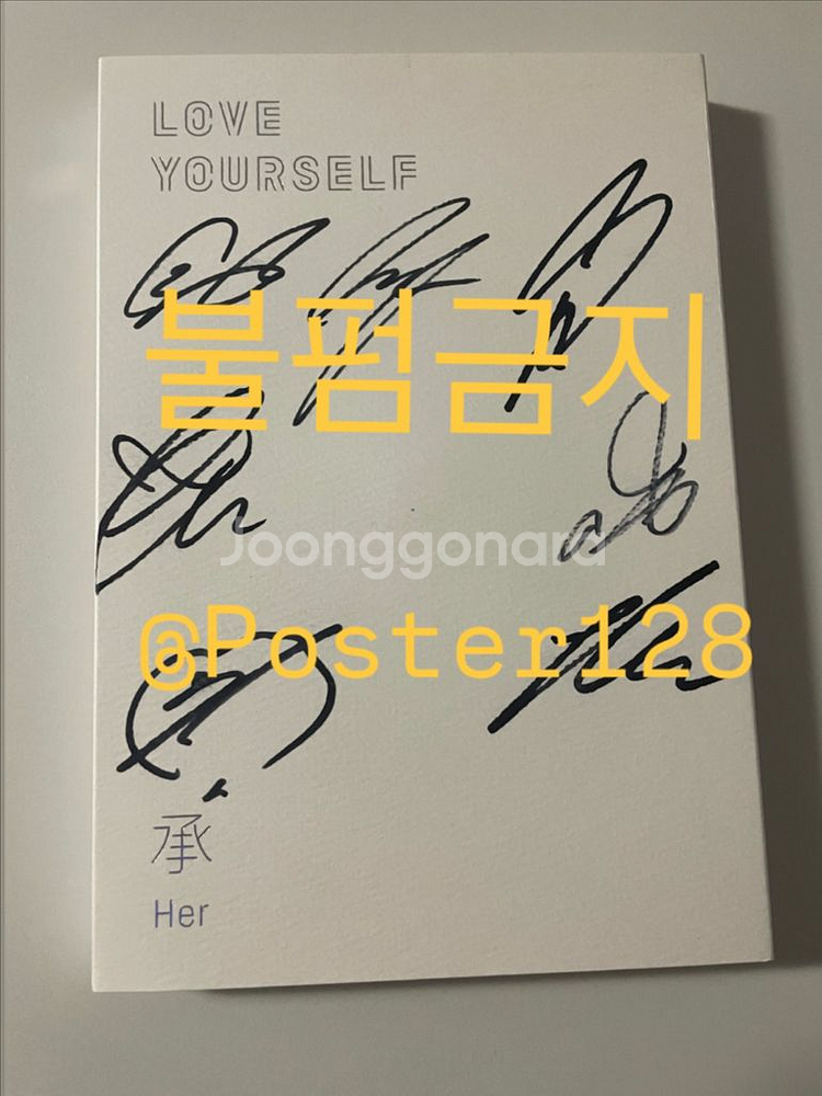 (비매) 방탄 친필 싸인 앨범 러브유어셀프 앨범 지인 통해서 받은 친필 싸인 앨범이에요 비매라서 구하고 싶어도 이젠 못 구하는 앨범! 포토카드는 정국/제이홉 있어요 (구성 사진 참고) 쉽게 구할 수 없는 앨범인 만큼 소중히 생각해주실 분 찾아요 🙇🏻♀️ 쿨거 원해요