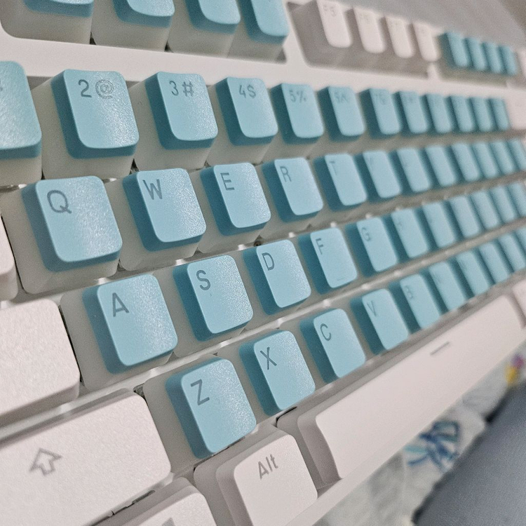 어디에서 구매했는지 명확하게 기억나지 않지만 (기록 찾는대로 기재) 측면이 반투명인 푸딩 키캡으로 흰색 버전과 하늘색 버전이 있습니다. 저는 혼용하기 위해 각각 한 세트씩 구매하여 섞어 사용하였고, 판매는 각 색깔 별로 개별적으로 진행합니다. 가격은 세트 당 가격입니다. (풀배열용 세트인데 패키지 사진은 준비중) 단순 체결 및 타건감 테스트만 하였기에 컨디션은 매우 준수합니다. 할인 문의는 일절 받고 있지 않습니다. 직거래는 서울 8, 9호선 석촌역 혹은 석촌주민센터 앞에서만 가능하며 택배는 운송료 3000원이 추가되며 로젠택배만 이용합니다 (타사사절). 이 제품의 경우 반값택배도 가능합니다. (GS25 한정)