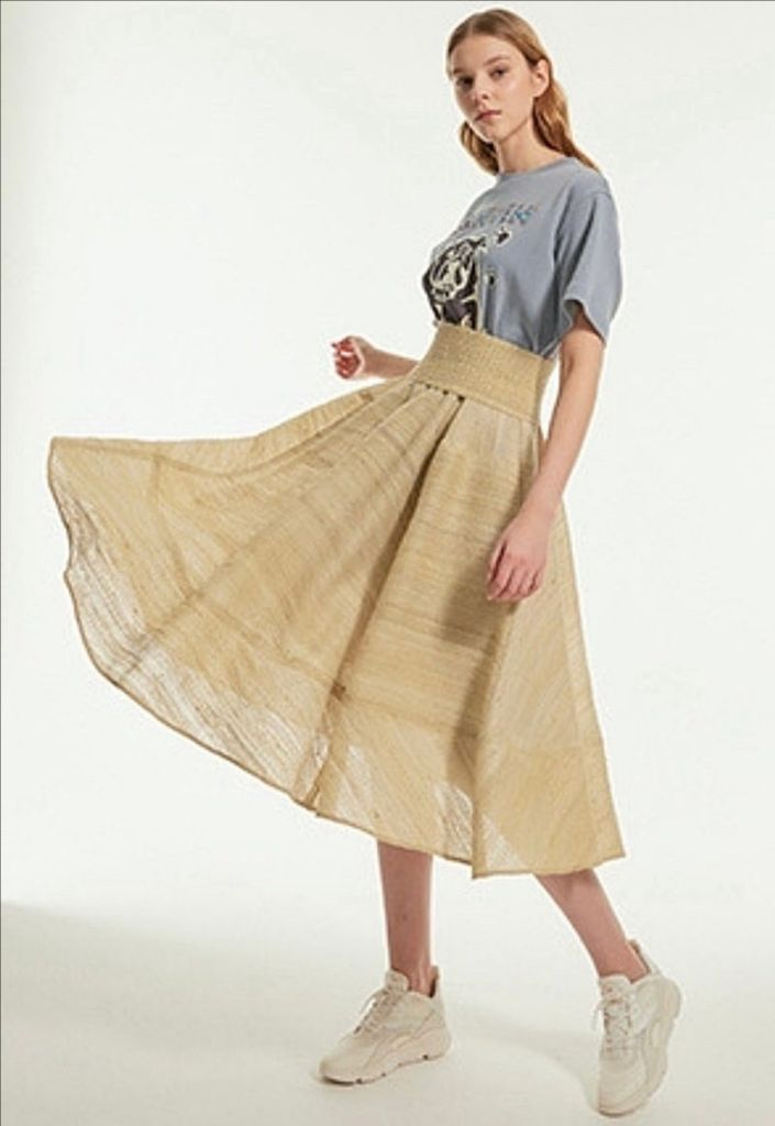 랑방 부클레 스커트 55 플레어 스컷이라 풍성하고 여성스러워요 두꺼운벨트는 분실입니다. 몇번 잠깐씩밖에 착용안했는데 소재특성상 필링이 있어요 10만원입니다.