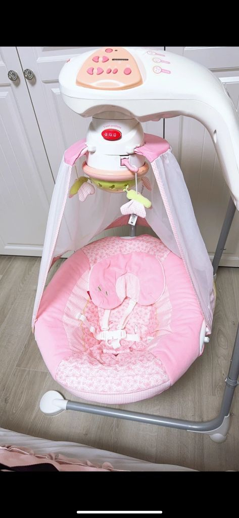 피셔프라이스 바운서 입니다 핑크색이라 가격을 좀 더 주고 구매했어요! 아기가 편안하게 쉴 수 있도록 도와줍니다. 모빌, 캐노피까지 풀셋으로 작동 문제없습니다 ^^ 좌우! 앞뒤! 스윙 조절 가능 하고 바로 사용 하셔도 될 정도로 세탁까지 완료 입니다 작동은 문제 없고 ! 중고인점 감안해 구매 부탁 드립니다 ^^ 택배비는 얼마가 될지 몰라 5천원 해놓았습니다 !
