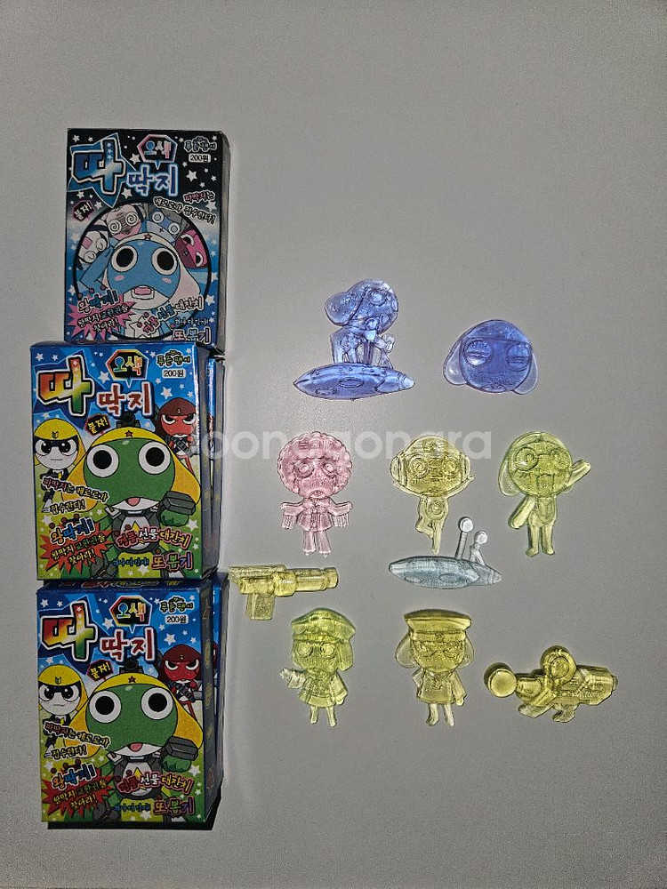 개인정보(거래정보)를 주고받는 행위는 사기에 노출될 수 있으므로 즉시 중고나라로 신고해 주세요고전문구 케로로 고무딱지 새제품입니다. 1박스에 작은 고무딱지 2개씩 들어있습니다 5박스 일괄 판매 오래된 제품인점 참고해주세요 구매 후 교환이나 환불 불가합니다