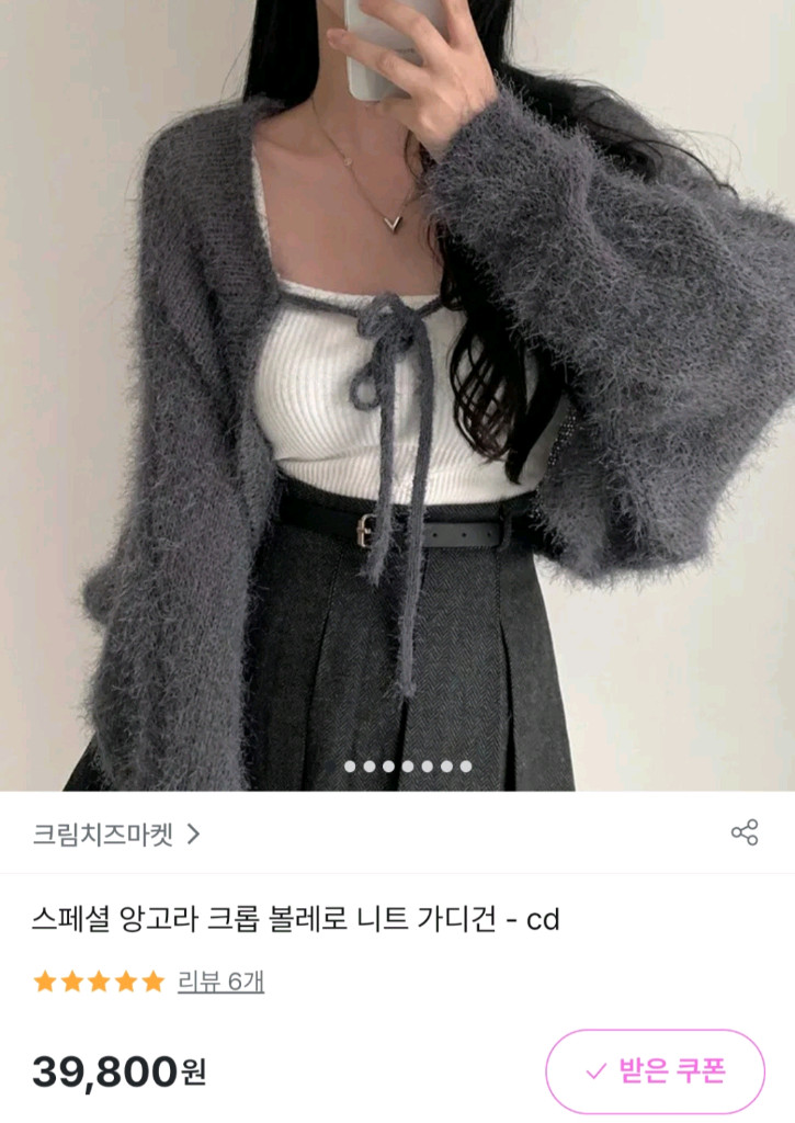 크림치즈마켓 앙고라 크롬 볼레로 니트 가디건 인디핑크 - 구매가능✔️ 차콜 - 구매가능✔️ 미개봉 새상품, 개당 가격입니다 쇼핑몰에서 제공한 상세사이즈 기재해놓았고, 배송 받았을때부터 택은 없었으나 미착용 새상품이므로 구매후 환불은 불가합니다 두컬러 일괄 구매시 반값택배 비용은 제가 부담하겠습니다 반값택배+1800 일반택배+3800