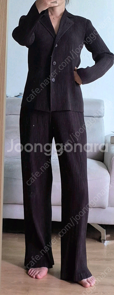 이세이미야케중 최고가라인 ISSEYMIYAKE 해칭플리츠 팬츠입니다. 실물 차르르 너무 멋져요 컬러는 딥한 다크브라운으로 가을에 너무 고급지게 입으실수있어요. 오피스룩 → 자켓-팬츠 수트 느낌으로, 격식을 차릴 필요 있는 자리에서도 어울릴 수 있고 캐주얼 → 하의만 혹은 상의만 따로 활용해도 좋음 (예: 티셔츠 + 플리츠 팬츠 조합) 계절감도 중간 계절부터 가을, 겨울 초까지 활용 가능할 듯 (두께와 주름 유지 상태에 따라 겨울용 코트나 레이어드 가능성도 있음) 팬츠만 정가 150만원+정도입니다. 오모테산도 매장 구입 정품걱정마세요 좋은일제옷들 선물도 듬뿍 담아드릴게요 득템하세요😇