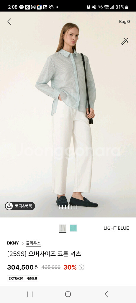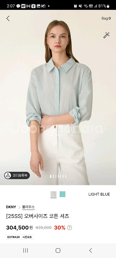 25년 DKNY 코튼 셔츠 라이트블루 색상입니다. 오버사이즈 핏으로 편안하게 착용 가능합니다 힌섬몰 현재판매중 고급지구이뻐요 세일전구매 확실히고급스러워요 새거나마찬가지 오버핏이어서 55에서66반까지