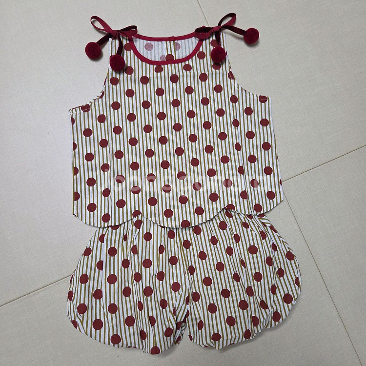 실착도 안한 새상품입니다🙏 라운드넥 뒷쪽에 오픈단추 2개 달려있고 옷 색감과 반바지 안쪽 느낌은 사진 참고해주시면 됩니다 ! 하의는 호박 반바지처럼 풍성하게 허벅지를 잡아주고, 리본으로 묶을 수 있는 방울달린 어깨 끈과 물결 스타일의 밑단이 포인트되어 한여름 외출복 코디로 너무예쁜 디자인이에요 🙂❤️