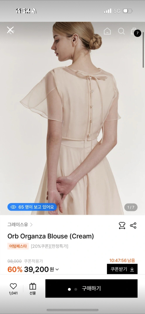 그레이스유 Orb Organza Blouse (Cream)입니다. 사이즈는 S입니다. 구매 후 비닐에서 벗기지도 않고 새상품 그대로 보관만 하였습니다