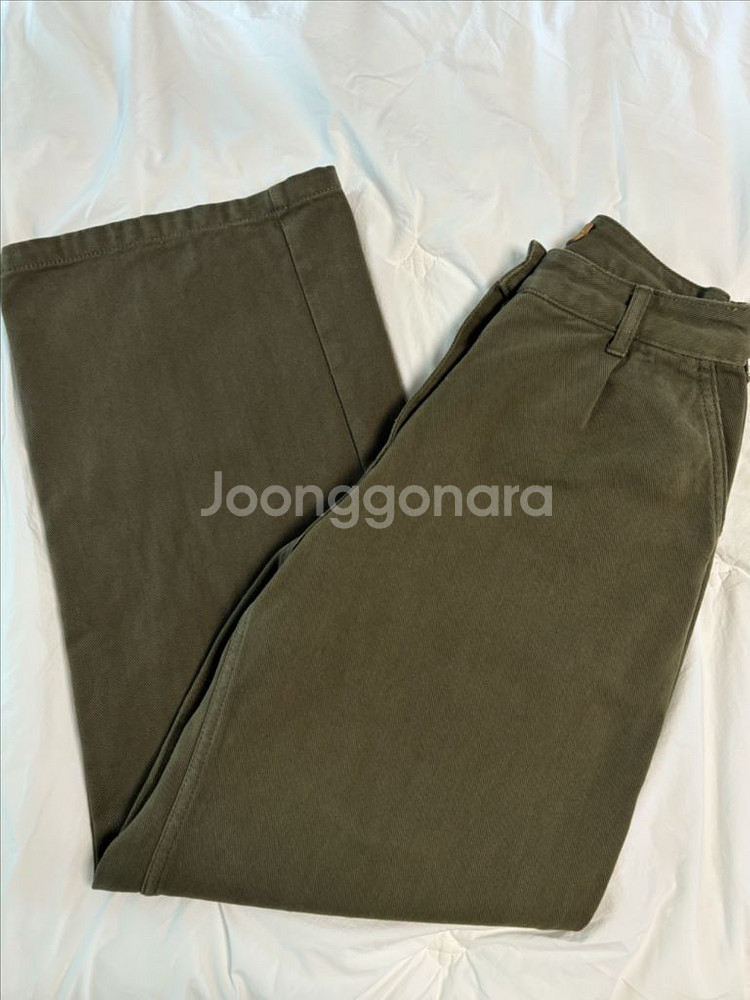 le17septembre ONE TUCK DENIM 카키색상 판매합니다 지금 주문시 11월 말 순차출고입니다 사이즈는 36인데 저에게 너무 커서 허리랑 기장 수선했습니다! 총장 102cm 허리단면32cm 189000원에 구매했고 수선감안하여 저렴하게 내놓습니다 :)