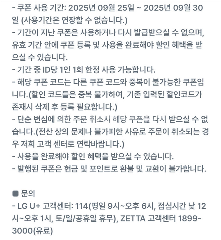 롯데마트 제타 9% 할인 쿠폰 (4만원 이상 결제시 최대 1만원, 9%할인) 500원 * 사용기한 : 2025. 9. 30 까지 ⭐️ 자세한 내용은 첨부사진 확인 📌 입금 후 쿠폰번호 바로전송 해드려요 쿠폰번호 전송 후 환불❌