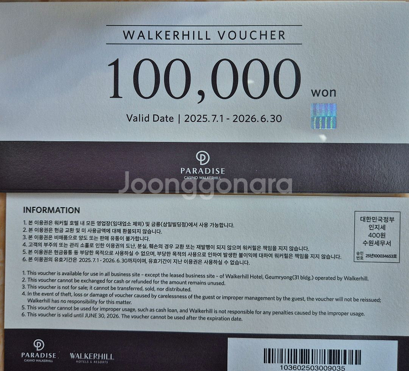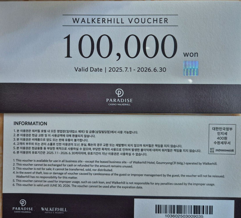 워커힐상품권 6장 더 판매합니다 장당95,000원 입니다~^^