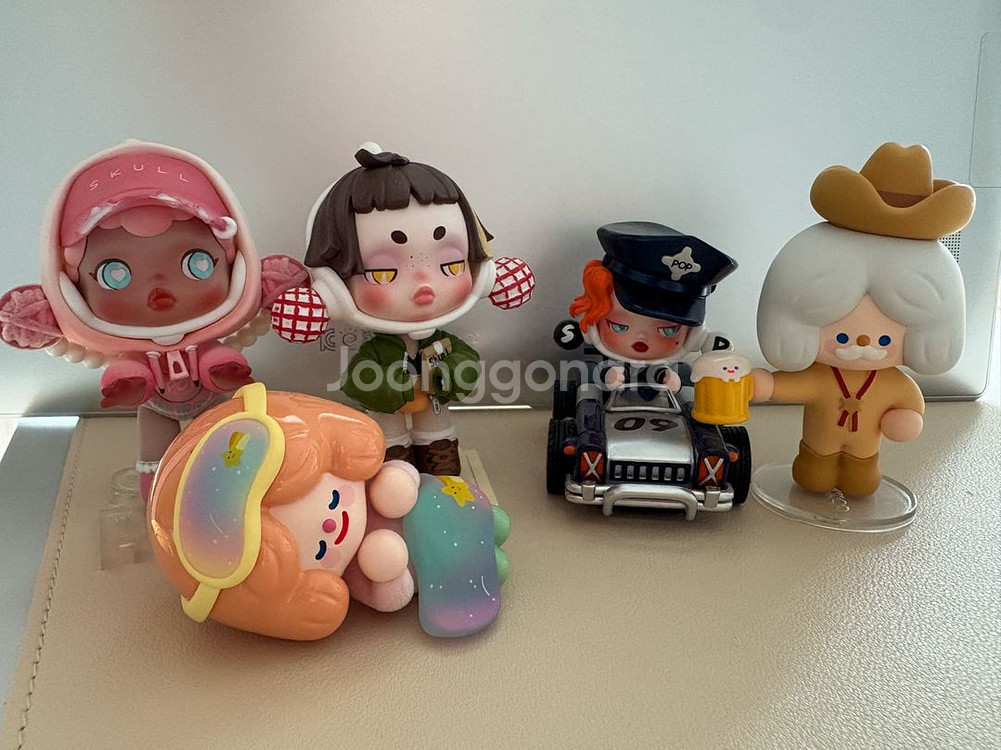 스컬판다 팝카 슈퍼트랙 피규어 스컬판다 액션컷 피규어 스컬판다 하이프판다 피규어 리코더팩토리 시크릿 피규어 2개 일괄판매 상자는 없고 카드는 ’하얀머리모자쓴리코(사진맨오른쪽피규어)‘말고 다 있습니다 립밤&립스틱케이스도 같이 드려요 일산,뚝섬역 직거래 택배가능 (+4000) 환불 반품 불가