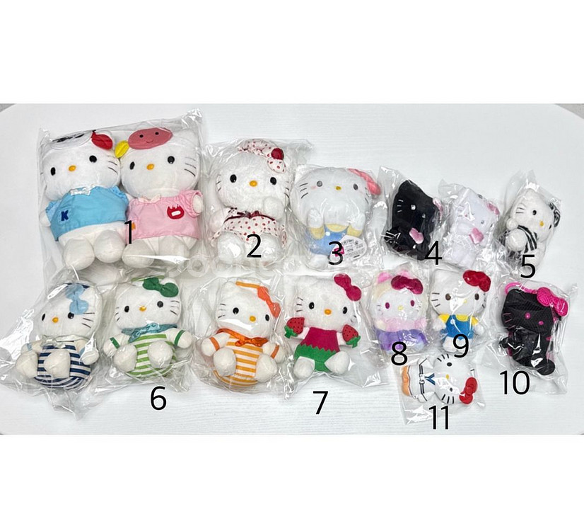 1. 고전 유치원 가면 키티 세트 : 120,000원 2. 고전 딸기 파자마키티 : 70,000원 3. 날으는 키티인형 : 23,000원 4. 올리브영 천사악마 키티 키링 : 세트 - 25,000원 / 각 13,000원 5. 헬로키티 고전 얼룩무늬 키링 : 45,000원 6. 고전 헬로키티 마린 : 세트 - 50,000원 / 각 18,000원 7. 고전 딸기키티인형 : 35,000원 8. 그라데이션 버니 토끼 헬로키티 마코 : 32,000원 9. 산리오 헬로키티 기본키링 : 16,000원 10. 블랙키티 : 33,000원 11. 50주년 맥토이 맥도날드 인형 : 27,000원 산리오 고전 헬로키티 인형들 판매합니다. 대부분 고전키티이지만 비닐포장해서 보관중이라 이염이나 하자없이 깨끗해요. 택부분은 사진으로 확인 부탁드려요. 원하시는 상품 체크해서 연락주시면 안내드릴게요. 택배거래 일택 +0.45