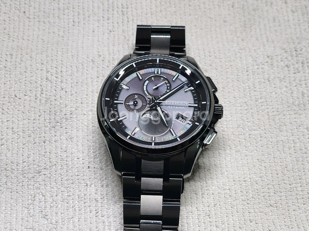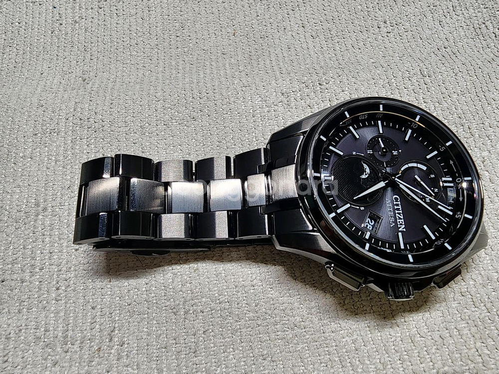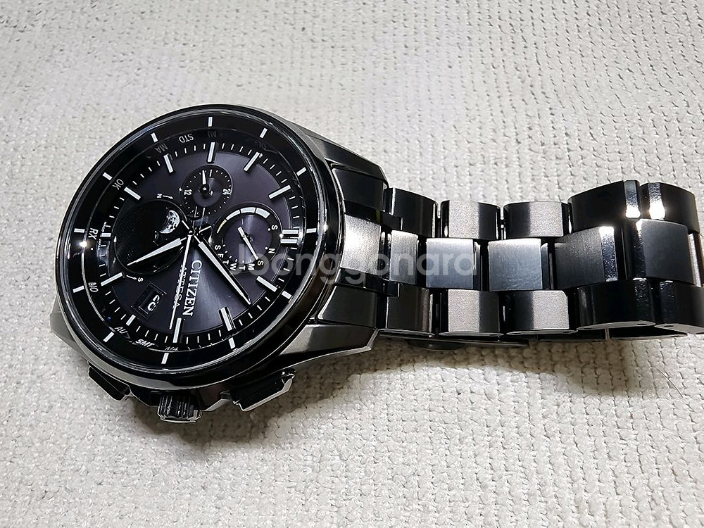 시티즌 아테사 문페이즈 블랙 by1006-62e 2023년식 버클, 백케이스 보호필름 붙어있습니다 눈에보이는 기스 없이 깨끗합니다 풀링크 풀박스 배터리도 충전 잘되어 있습니다