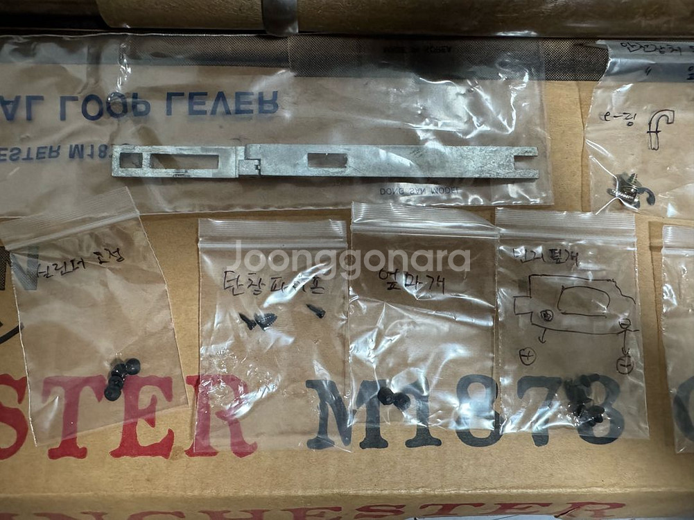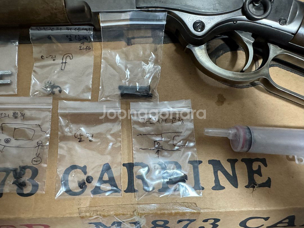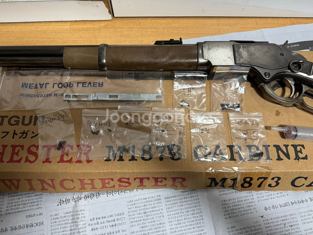 동산모형 윈체스터 M1873 입니다. 대략 2007년 즈음에 구입한 구형 초기 모델이고 부품용입니다. 격발안됨 시어 갈림 등으로 내부 부품 교체해서 수리해보려고 동산모형에 나사 같은거랑 시어도 새거로 샀는데 짐만 되고 있어 처분합니다. 부품은 24년 즈음에 동산모형에서 직접 구매했습니다만 윈체스터 본체가 워낙 구형이라 100% 호환 여부는 확실하지 않습니다. 사진에 있는 거 일괄입니다. 제품 크기가 커서 택배는 안되고 직거래만 됩니다. 서울 영등포구 GS25양평코업점에서 거래 가능 택배 안되니 택배로 구입하실분은 연락하지 마세요