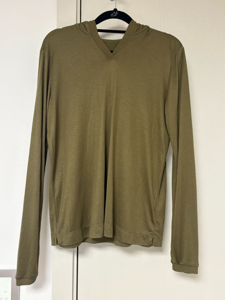 Theory 후드티입니다. - 색상은 올리브그린입니다 - 사이즈는 P입니다 1회정도 착용 얇고 후들후들 야들야들한 소재입니다 길이는 58정도 55사이즈정도입니다 택포