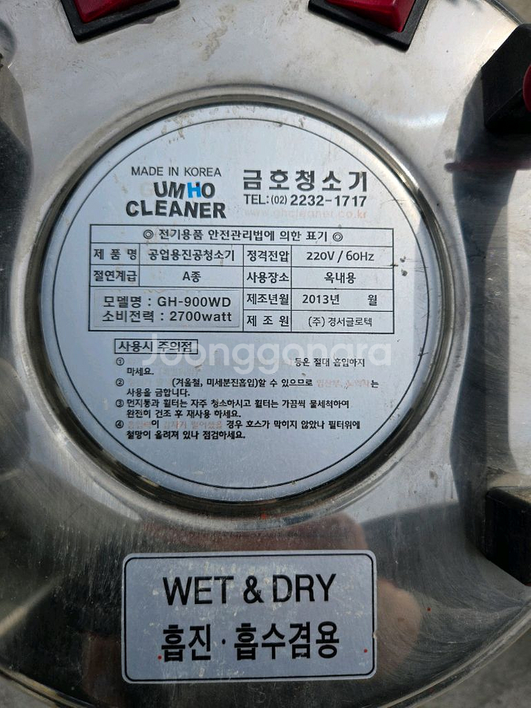 금호 습건식 청소기 GH-900WD 모델입니다 사무실이나 창고 청소용으로 좋습니다. - 흡진, 흡수 겸용 - 모델명: GH-900WD 전체적으로 사용감 있으나 창고에 보관만하구 거의사용안햐서 작동 잘합니다! 사진상 구성품 다드립니다. 편하게연락주세요.