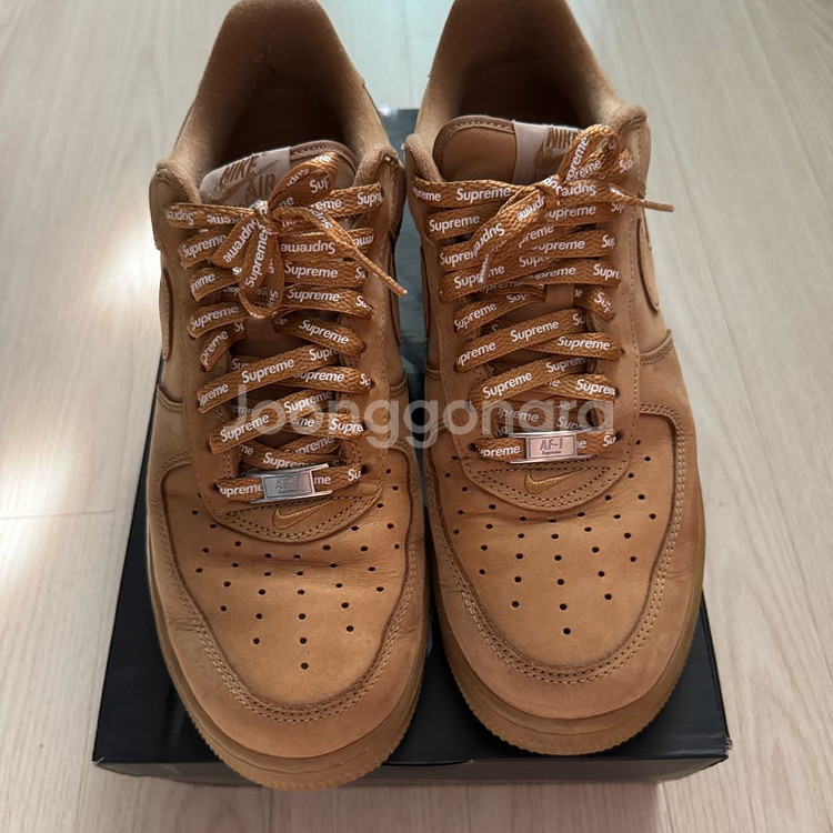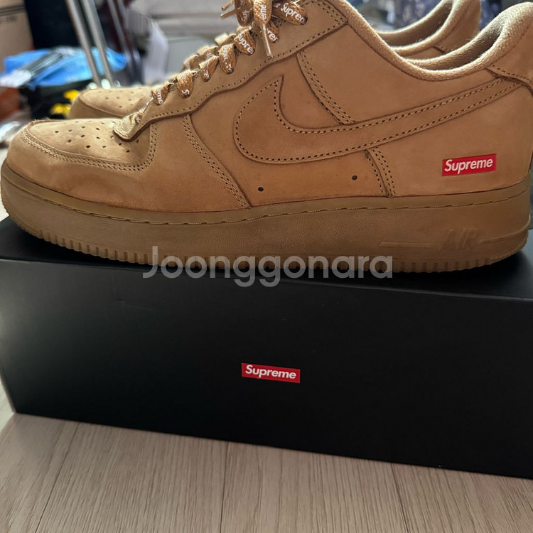 나이키 에어포스1 슈프림 콜라보 275 사이즈입니다. 아끼면서 깨끗하게 신었습니다. 냄새 거의 없고 안창 깨끗합니다. 뒤꿈치 까짐 거의 없고 오른쪽 안쪽에 약간 닳은 흔적 있습니다. 밑창은 사진 상태이고 외관 스크래치나 구김은 최대한 잘 보이게 찍었습니다. 구매하시면 백 하나 드립니다.
