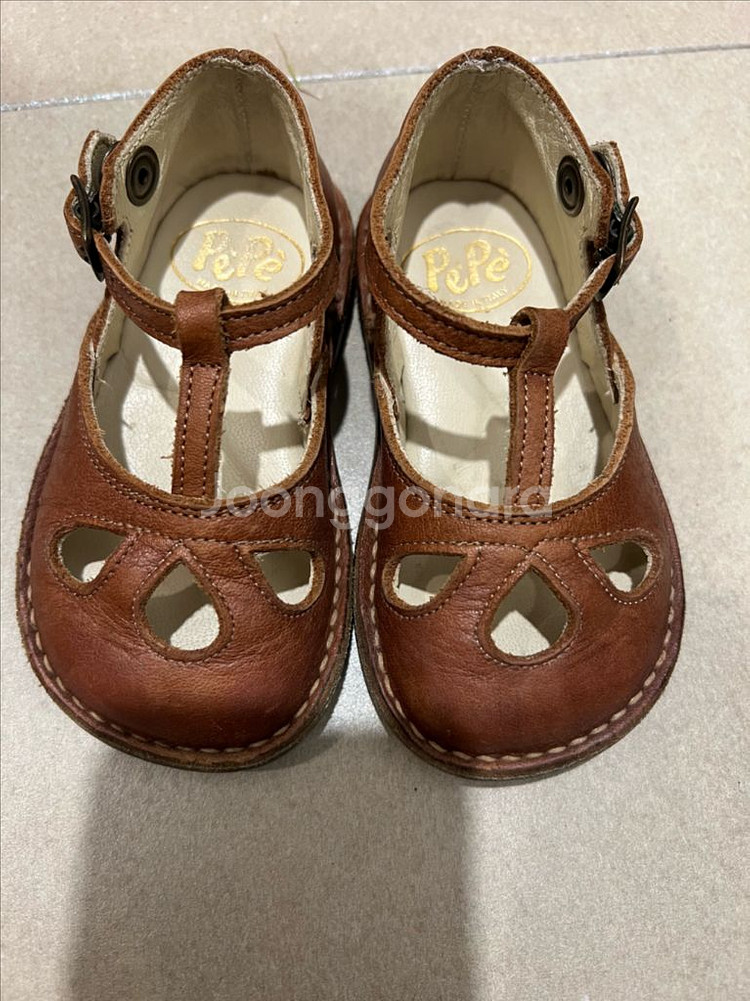 페페루시 21 똑딱타입 박스가 아무리 찾아도 안보여서 다른 박스에 넣어드릴게요 21로 기억하고 밑창도 21로 보이는데 박스가 안보여서 20인가 싶기도 해요ㅠㅠ 밑창 사진도 같이 드릴게요 앞 코 까짐 살짝 있어서 구두방에서 칠했어요 봉통 22 새상품 구매 후 몇번 안신겼으나 아이가 신던 중고인점 감안해주세요 새상품 같은 상태는 아니니 예민하신 분 구매 피해주세용 일괄 택착 7.5
