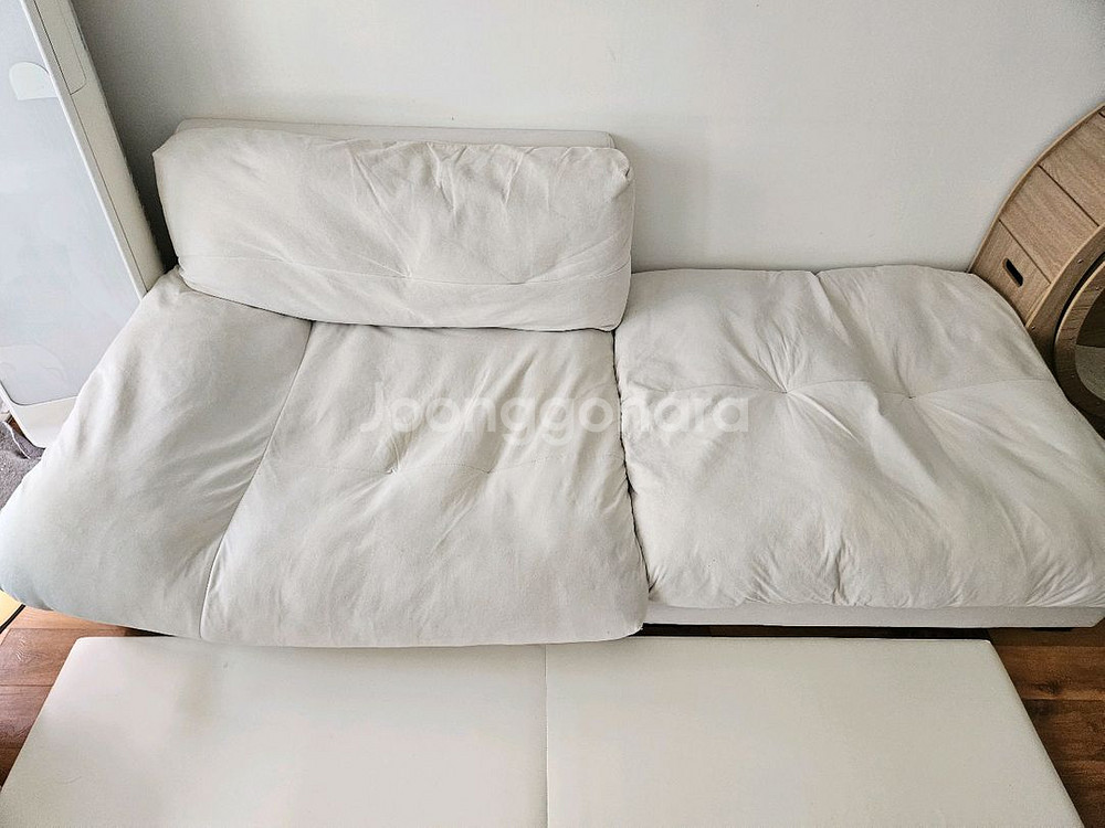 이노센트 하늘 N1 구스 패브릭 모델 2.5인 카우치소파와 스툴입니다 아이보리색이며, 거위털 충전재로 포근함을 더해줍니다 공간에 맞춰 자유롭게 배치가 가능해요 등받이소파 - 10,000원 입니다 스툴소파 - 30,000원->판매완료 1년정도 사용하였습니다 등받이소파에 등받이부분은 탈부착이되고 커버분리세탁이 가능합니다 등받이쿠션 지퍼달린부분 바느질이 약간 뜯어졌습니다 뜯어진부분만 바느질하셔도되고 그냥 사용하셔도 됩니다 사진으로보이는 부분만 찍힘자국이있고 다른곳은 완전 깨끗합니다 메시지주세요♡