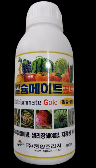 농장에서 사용하고 남은 수량 내놓아요.. 식물이나 작물이 웃자랐을때 사용하면 줄기에 살이 붙어 튼튼해지면서 웃가람을 경감시켜주는 효과도 있습니다. 칼슘에 붕소도 들어가 있어 일반 칼슘영양제보다 효과가 좋더라구요. 모든 작물에 사용하지만, 특히 고추,토마투,배추에 꼭 사용하고 있습니다. 아시는분은 아시겠지만, 고추에 꽃이 노랗게 떨어지거나, 꼭지가 노랗게 되거나, 열매 밑부분이 탄저병같이 썩는거 같이 보이는게 모두 칼슘결핍(부족)현상입니다. 고추농사 지으시는 분들 100% 칼슘을 살포하지요... 토마토의 경우는 밑부분 중앙(흔히 배꼽이라고하는 부분)이 검게 썩는거처럼 보이는 배꼽썩음병도 칼슘이 부족해서 생기는 증상이라 칼슘을 살포합니다. 배추는 크면서 잎끝이 누렇게 변하거나 줄기부분이 물러지는 현상도 칼슘이 결핍되어 생기는 증상입니다. 인터넷에 1만원+택배비별도로 판매되고 있습니다. 식물(작물)영양제는 유통기한이나 보증기간없이 사용할수 있습니다. - 제품명 : 칼슘메이트골드 500ml - 시중에서 1병당 10,000원~15,000원 합니다. - 1박스(20병) 일괄로 구매하시는 단가입니다. - 사용량 : 12말(250리터)~25말(500리터) - 도서산간지역 추가배송비있음