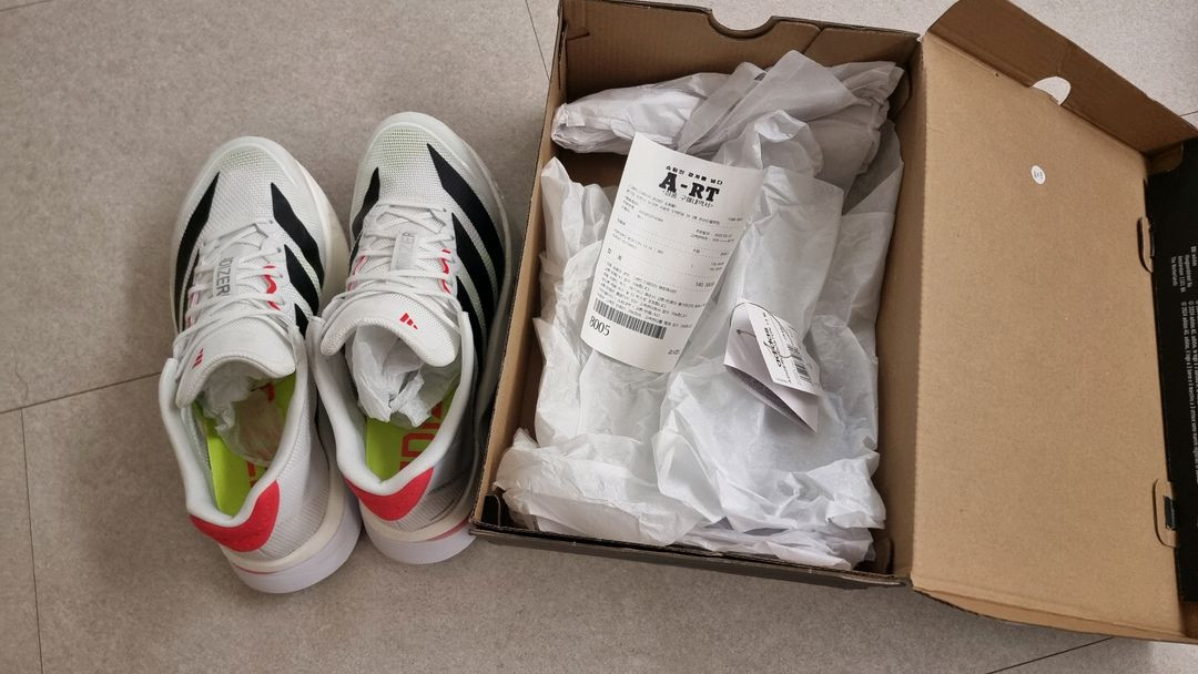 구매 구성품 풀박스 아디다스 택, 영수증, 박스 보유 그대로임 사진보시는대로 깨끗해요 정가179000원 판매가14만원 265사이즈 5km 1회 런닝머신 3km 1회 사용하였고 다른 신발로 바꿔서 내놓습니다.