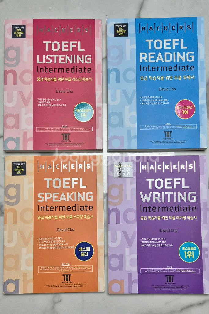 해커스토플ㅡ중급교재 (강남 해커스) 강남 해커스토플 수업 1번듣고 판매합니다! 사용감 거의없는 새책이고 리딩,리스닝 메모(1-2장정도) 있어요 주교재 토플 리스닝 중급 정가24,900 -> 판매완료 토플 리딩중급 정가25,000 -> 판매완료 토플 스피킹 정가 22,000 -> 12,000(메모x) 토플 롸이팅 정가 23,000 ->18,000 (메모x) 부교재 (사진참조) 3권 각1만원 -> 15,000(2권메모x 1권메모1장) 일괄 구매시 70,000원에 판매합니다 택비별도