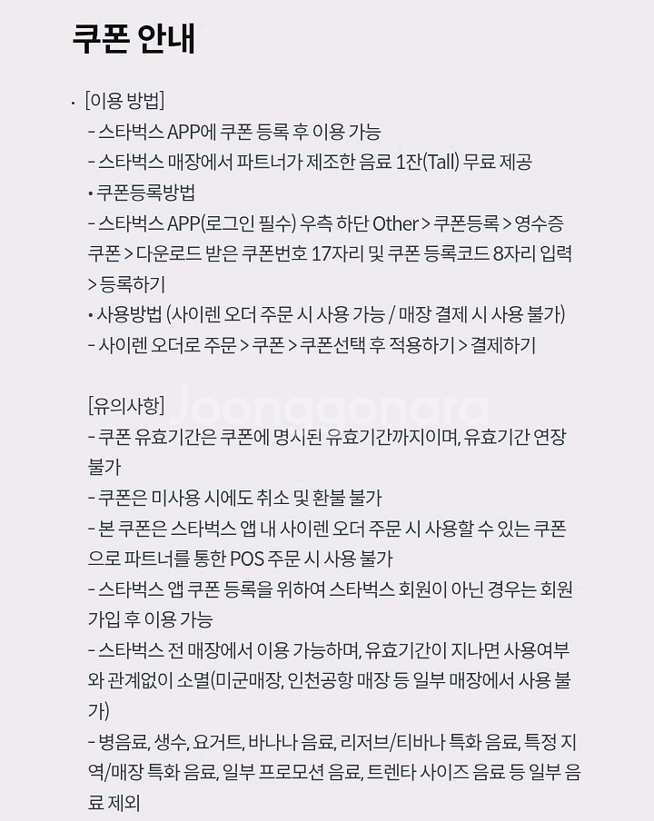스타벅스 무료음료 Tall 쿠폰 팝니다. 스벅앱 등록후 사용-사이렌오더 전용. 사용등록및 유효기간 9월 30일 화요일 오늘까지. 장당 3,800원에 팝니다. 3장 있어요. 사용 방법 및 유의사항은 이미지 참고 바랍니다. 거래완료후에는 핀번호(바코드) 노출로인해 환불이 불가한점 반드시 양지 바랍니다. #스벅 #무료음료