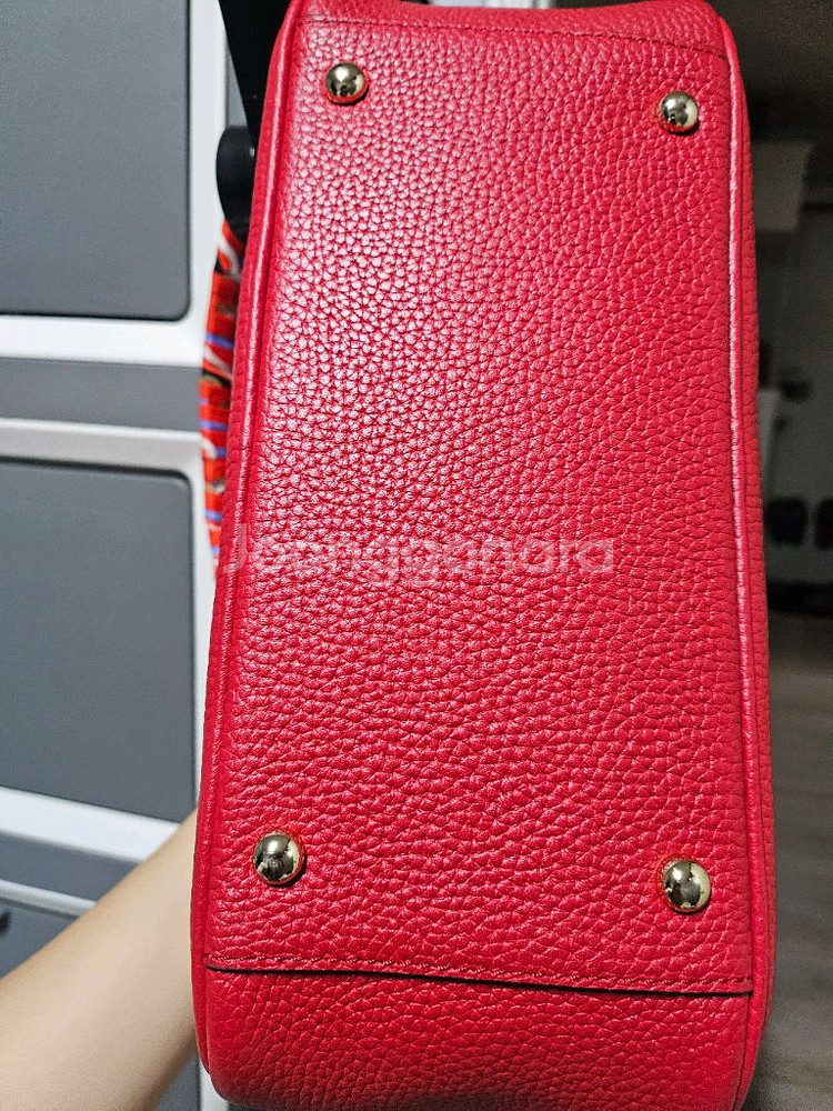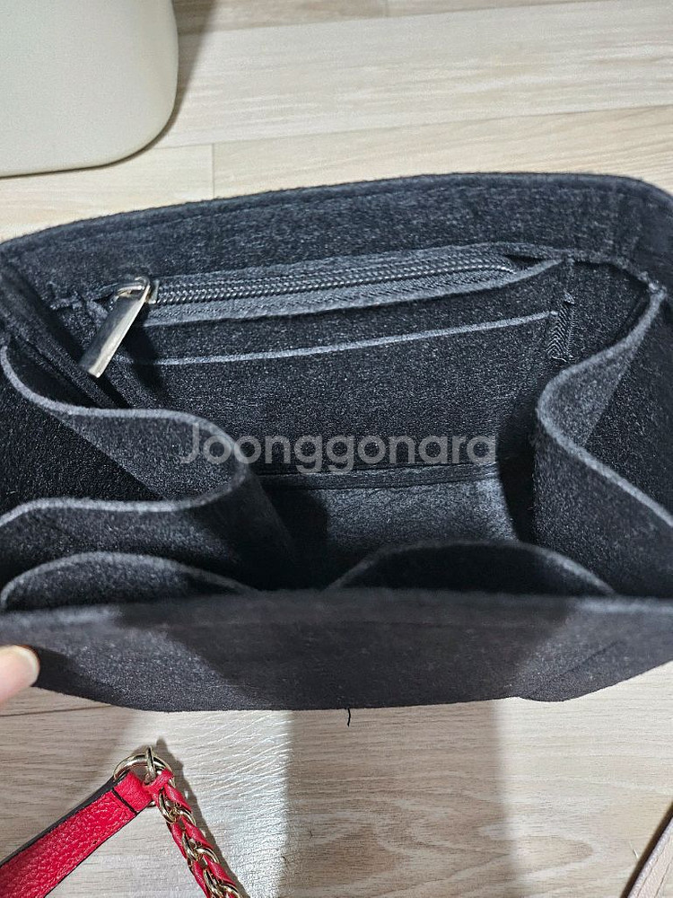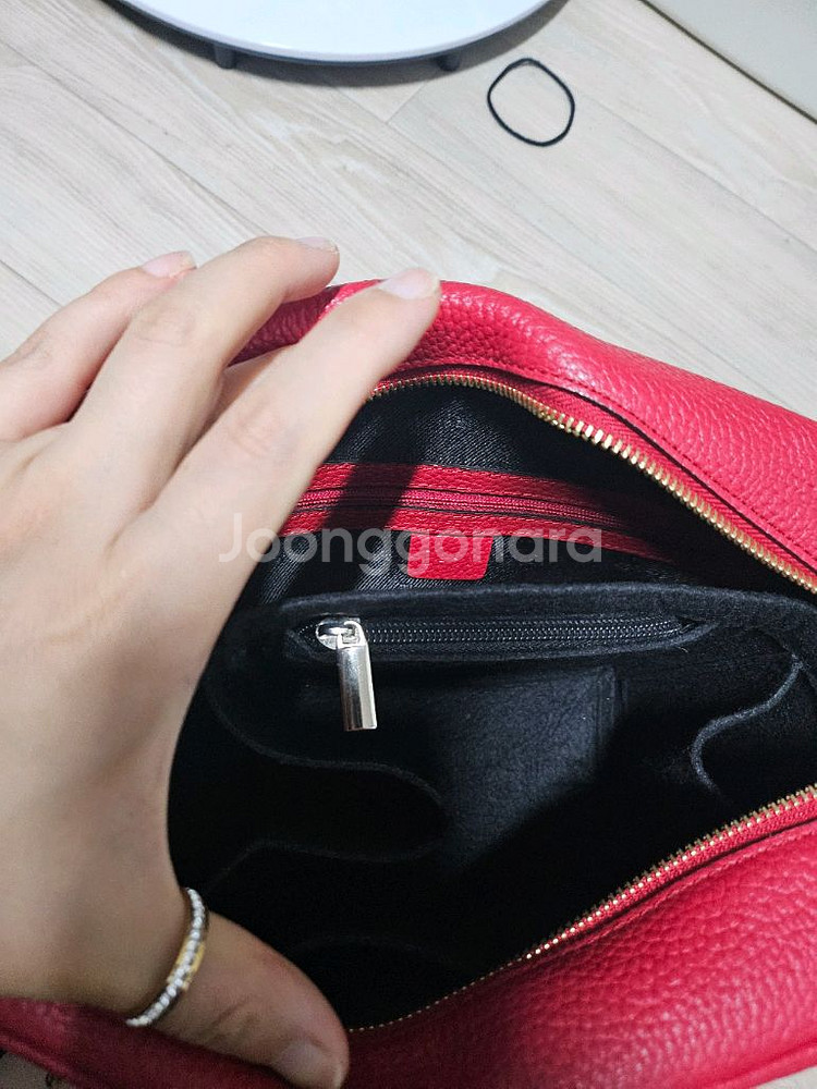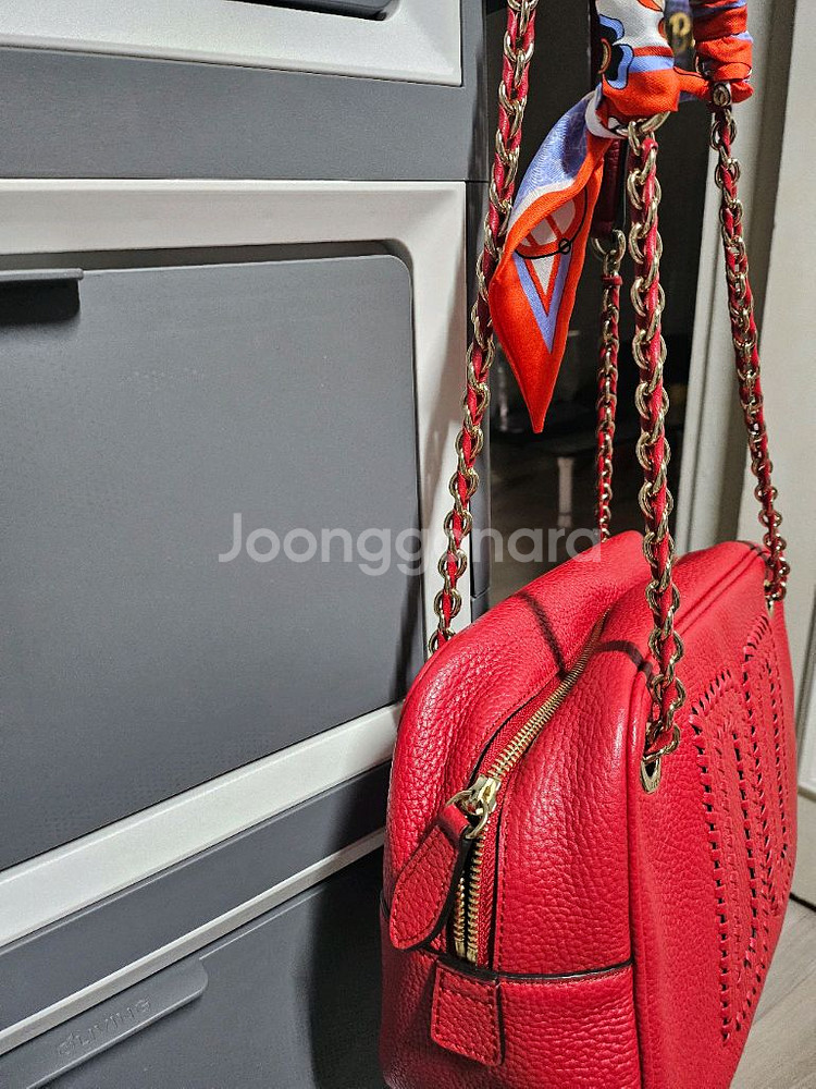 닥스 빨간색 가방입니다 체인 디테일이 예뻐요 가죽 소재로 고급스럽고, 포인트 주기 좋은 색상입니다 가로28 세로 19 사진엔 색이 마니 빨갛게 나왔는데 저것보다 어두운 빨간색입니다 상태도좋고 크로스도되고 안에든 검정색 빼도 되고 넣어써도 됩니다 내부에 수납 공간 분리되어 있어 편리해요