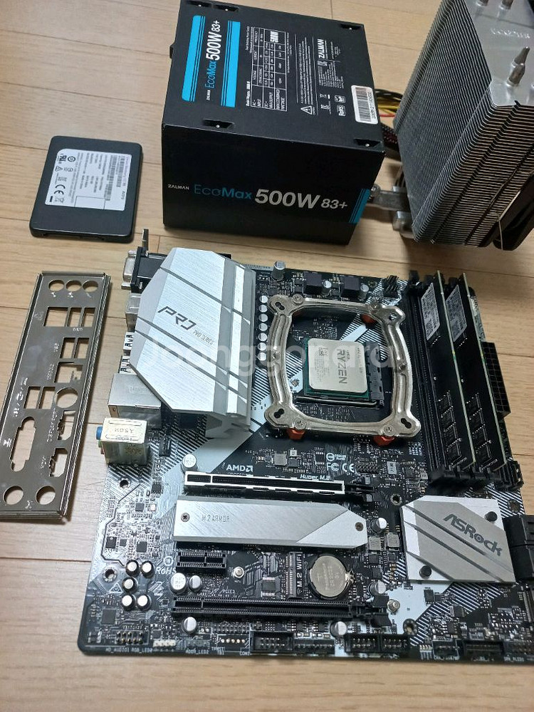 라이젠5600 cpu 에즈락 b550m pro4 메인보드 ddr4 8g×2 16gb메모리 128기가 윈도우10pro설치됨 ssd 잘만 500w 83+ 파워 공랭쿨러 포함 구성입니다. 그래픽카드가 빠진 보드셋구성이며 1050ti 그래픽카드 포함시 5만원추가됩니다. 직거래는 충남 홍성.예산근처 가능하며 택배거래시에는 별도5천원 부담해주셔야합니다.택배는 개별뽁뽁이 포장해서 파손안되게끔 보내드립니다.안전거래는 하지않으며 모든부품 이상없이 어제까지 잘사용하던거 오늘 탈거한부품들입니다.