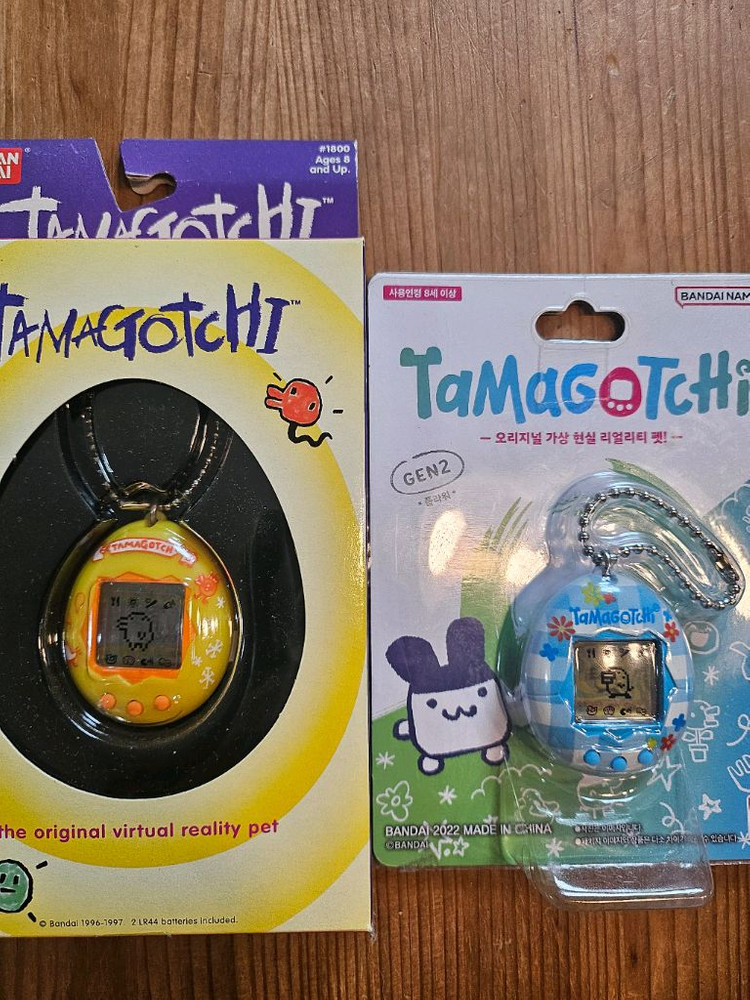 다마고치 오리지널 1세대.2세대 세트입니다. 미개봉, 새 상품입니다. 1세대- 케이스 뒷부분 구김 자국 있음. 2세대- 케이스 뒷부분 테이프 눌린 자국과 살짝 떠 있음. 상품엔 지장이 없습니다. 교환.환불 불가합니다. 안전결제 이용시 수수료가 추가 된 가격으로 수정 후 결제 진행합니다.