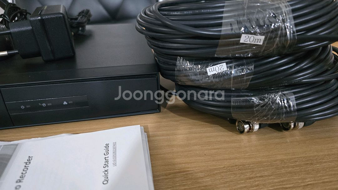 4채널 셋탑 (하이크비전) 카메라 3개 (200만화소) 하드 2TB 20m line 3개 마우스 사놓고 사용하지 않은 CCTV세트예요. 연결테스트 해봤는데 작동 이상 없고 화면 송출 잘됩니다. 스마트폰 설정 방법등 설명서 다 있어요.