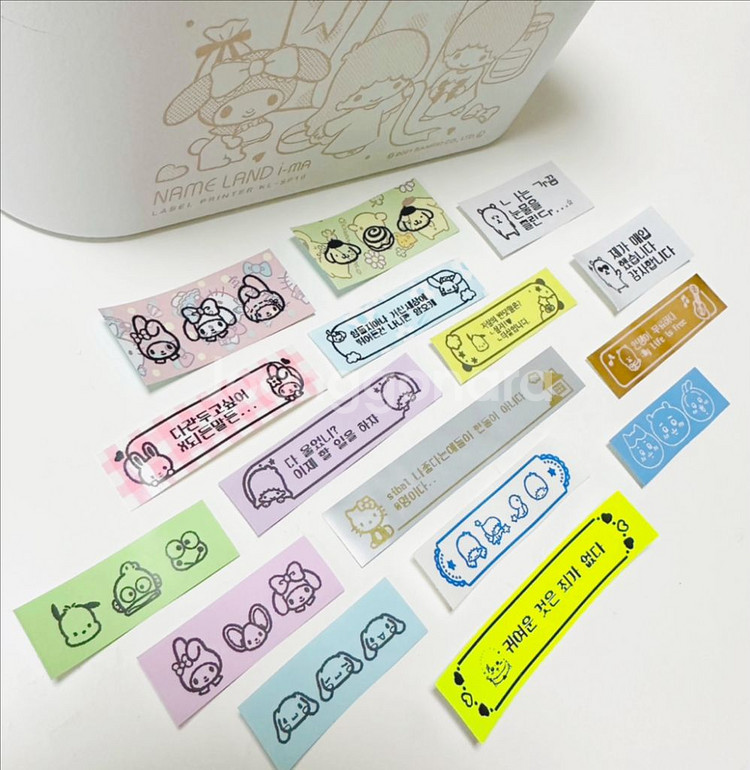 산리오 네임랜드 라벨기 카시오 KL-SP10-SA 구매 후 사용 빈도가 거의 없어 판매합니다 라벨기 본품+박스+라벨테이프 50개+@ 라벨테이프 귀여운거 엄청 많고 산리오 캐릭터 그려진것들도 전부 포함이에요 일본 직구로 다 비싸게 구매했습니다!ㅠㅠ 원하시는 그림 블루투스로 연결해서 뽑을 수 있고 원하시면 제가 모아놨던 아이콘들 다 보내드릴게요(마지막 사진2장 참고) 라벨테이프 가격 감안하여 올립니다.. 문의 주세요!🥲