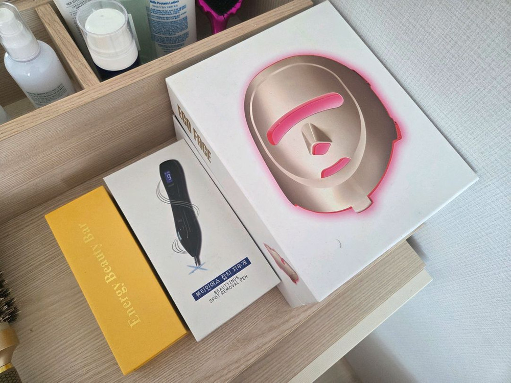 피부관리기기 세트로 팝니다. 에코페이스led마스크 기게 뷰티인어스 잡티지우개 (점.잡티 빼는기계)/바늘30개중에 5개만씀 새상품)에너지골드바(얼굴진동마사지기계) 사놓고 몇번쓰지못하고 방치해두다 작동이상무 확인후 일괄처분해봅니다^^ 저렴하게 가지구가세요!