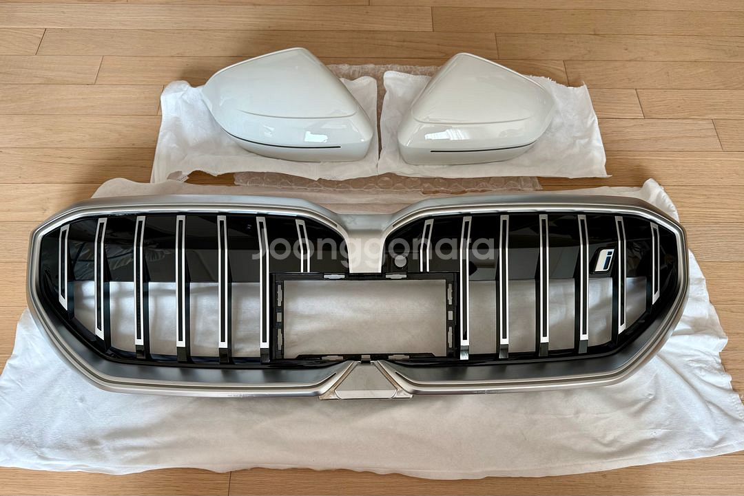 BMW i5(G60) 순정그릴, 순정사이드미러 커버 판매합니다. ‘25.6.20. i5 e40 msp 차량 출고 후 당일 M60 순정 그릴, 순정 사이드미러로 센터에서 교체했습니다. 출고 당일 작업했기 때문에 장착 후 키로수 3km 미만입니다. 당연히 그릴 아이코닉글로우 정상작동 합니다. (그릴에 레이더센서는 없습니다.) 돌빵, 기스 아예 없으니 제품상태는 믿으셔도 됩니다!