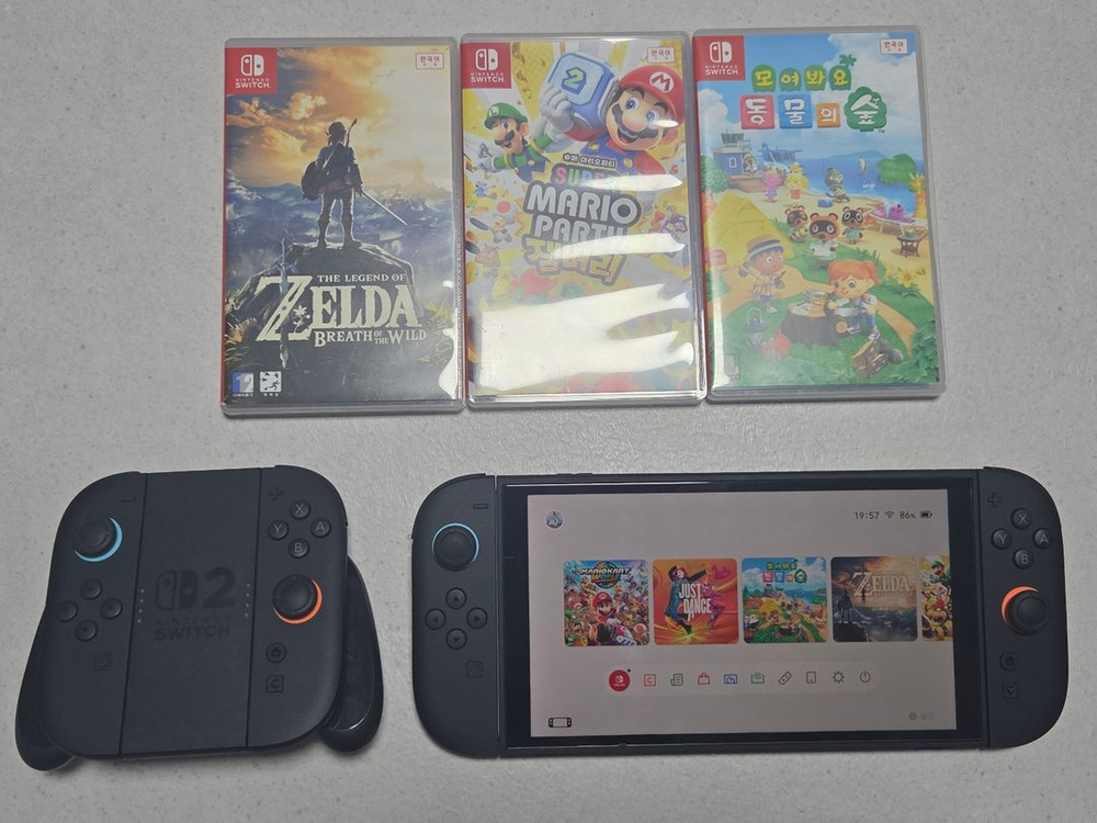 닌텐도 스위치2 본체, 정품 조이콘, 게임 칩 3개 함께 판매합니다. - 젤다의 전설: 브레스 오브 더 와일드 - 슈퍼 마리오 파티 잼버리 - 모여봐요 동물의 숲 본체와 조이콘 모두 정상 작동합니다 계정에 저스트댄스 2025, 마리오카트월드 있어요 원하시면 계정 공유드립니다. 스위치 박스도 그대로 있어요. 반값택배 원하시면 꽁꽁 잘 포장해서 드릴께요! 액정은 보호필름 붙여있어요.