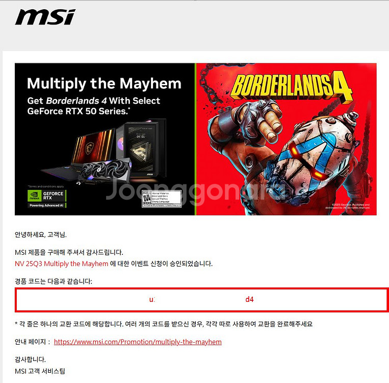 보더랜드4 (Borderlands4) 엔비디아 게임 코드 판매 합니다 코드를 엔비디아APP에 등록하면 됩니다 (정가 8만5천원) - 대리등록 X - RTX 5070 이상 글카 소지 필수 - 타 게임 코드 등록했던 글카는 안됨 - 상품 특성상 환불 X