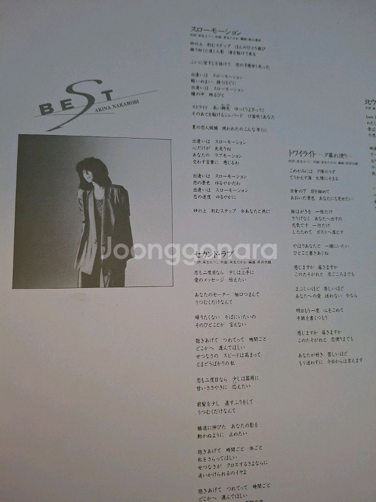 나카모리 아키나의 히트곡들만 수록한 베스트 앨범 2장 입니다. 1.1983년 초판 - 자켓 EX~NM 알판 NM급 2.1986년 초판 - 자켓, 알판 NM급 2장 다 상태 좋고 개별은 각 이만원 일괄 삼만육천원 입니다. 일산 직거래 가능하고 택배는 5천 또는 판매상품 7만이상 무료로 LP전용 박스로 포장하여 안전하게 배송해 드립니다.