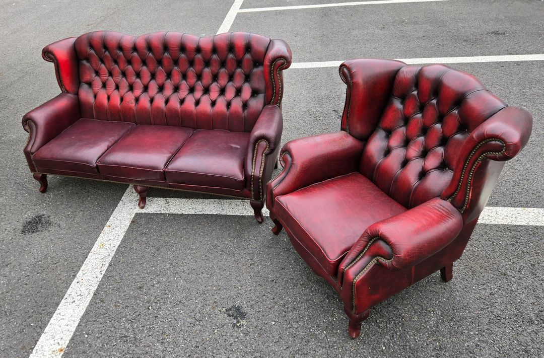 체스터필드 가죽 소파 팝니다 3인과 1인 세트입니다 크기 3인 w185× d80× h98 1인 w98× d82× h100 1인 등받이가 미세하게 더 높습니다 오래된 소파라서 낡은 감 있습니다 각 마감 부위마다 사용된 철물장식에 부식 존재합니다 상태는 사진 참고해주세요 직거래 서울 노원구 CU공릉마중점 남양주 수동면 보린장로교회 앞