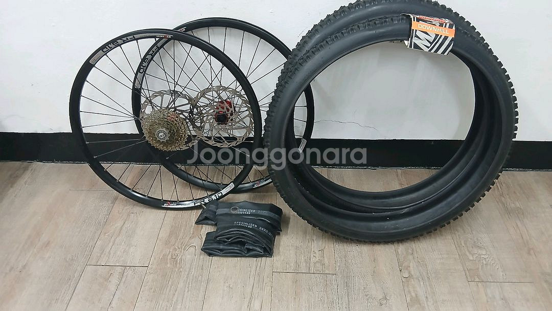 26인치 임도라이딩용으로 사용 충격 데미지 거의 없습니다 상태는 좋습니다. *호프pro2 허브 *dt swiss fr 6.10 림 *앞 20mm액슬방식 *뒤 9mm 큐알방식 *맥시스 다운힐 타이어 새제품 보관만 했고 타이어 26×2.7 *타이어 사이드쪽 미세크렉있음 *튜브 스페샬라이즈드 26×2.3 / 3.0 아직 쓸만합니다. 빵꾸 패치 한곳 있습니다. *아비드 203mm 로터 앞ㆍ뒤 로터 표면 단차 거의 없음 *가격 26만원 ####사진의 스프라켓 제외 입니다##### 직거래 부산 교대역ㆍ동래역 인근 직거래합니다. 0/0