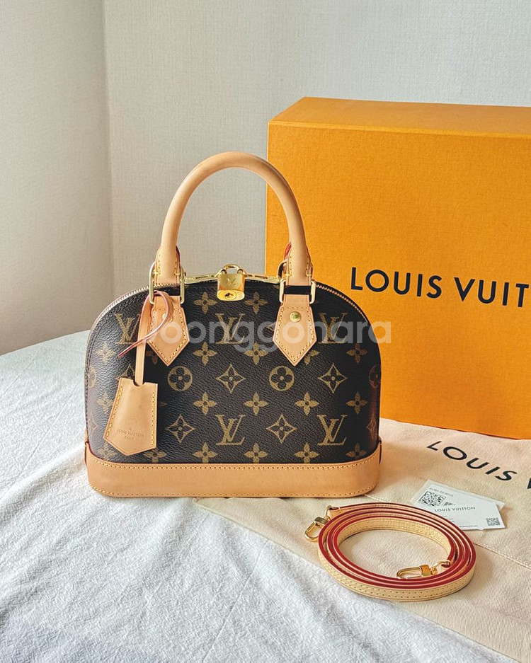 모델명 : 루이비통 알마 BB 색상 : 모노그램 상품번호 : M53152 사이즈 : 약 23.5x17.5x11.5cm 상태 : A+ 구매시기 : 2023 / 신세계백화점 구성품 : 본품, 더스트백, 이너백, 박스 루이비통 알마 BB 모노그램입니다 여러 셀럽들 일상템으로도 많이 보이죠 :) 꾸꾸꾸부터 마실룩까지 모든 룩을 섭렵한 알마BB입니다 리셀로도 꾸준히 수요가 많은 라인으로 입고 요청 문의도 많이 받았으나 양호한 컨디션에 합리적인 금액으로 어렵게 입고된 피스입니다! 23년 구매 후 실착 횟수 5회 정도입니다 전체적으로 큰 하자 없으며, 고질적인 부분 카우하이드 물자국은 미미한 수준으로 양호하고 태닝 진행은 약하게 되어 있습니다 하드웨어 부속품 부식 없이 깨끗합니다 크로스 스트랩은 미사용 상태이며 이너백 사용으로 내부 사용감 없습니다 컨디션과 사용감 고려했을 때 가장 합리적인 금액으로 보여드립니다 :) 본품, 더스트백, 이너백, 박스 있습니다 내장칩 버전이구요 고이비토 정품 검수 완료했습니다 요청 시 정품인증서 사진 전송해드려요 * 중고 물품 특성 상 반품은 불가합니다 상품 등급표 - 새상품 : 미사용 새상품 - 새상품급 : 단순시착 또는 실착 횟수 3회 미만 - S : 사용감 거의 없고 전체적인 컨디션 매우 좋음 - A+ : 사용감은 있으나, 상처나 얼룩이 거의 없음 - A : 사용감이 있고, 상처나 얼룩이 보이지만 심하지 않음 - B : 사용감도 있고 얼룩이 눈에 보임 - C : 오래된 상품이며, 사용감도 있고 얼룩도 심함