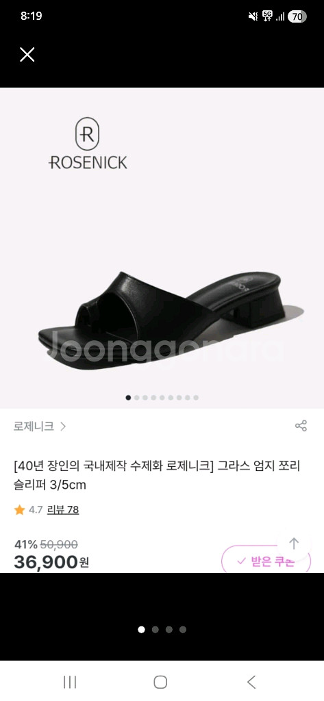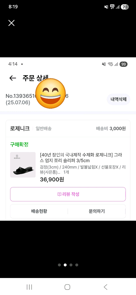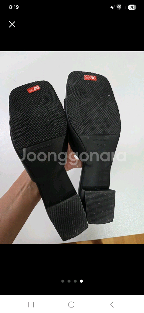 성수동 수제화 로제니크 그라스 엄지 쪼리 슬리퍼 블랙 색상 240 사이즈입니다 실착 몇 집 부근에서 딱 한번, 한두시간 했어요! 다른색상 235구매해 잘 신고 있는데 이번에 블랙 구매하면서 240으로 잘못 구매해 내놓야요. 사이즈가 저에게 큰데 이미 신어버려 반품 교환이 어려워 내놓아요. - 구매 2025년 07 09 - 사이즈: 240mm - 색상: 블랙 - 굽 높이: 3cm - 구매 가격은 36,900원입니다+택배비 3000원 입니다. - 판매가격 : 25000원 (알뜰택배시 2000원 추가)
