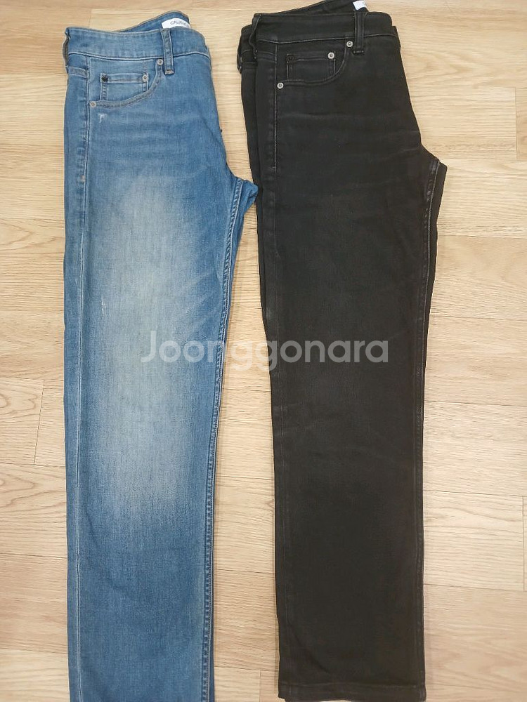 몇 해 전에 백화점에서 구매한 캘빈클라인 바지 두 벌. 상태는 아주 좋아요. 살이 쪄서 두세 번 있고 계속 보관만 했어요.허리30싸이즈. 키는 176입니다