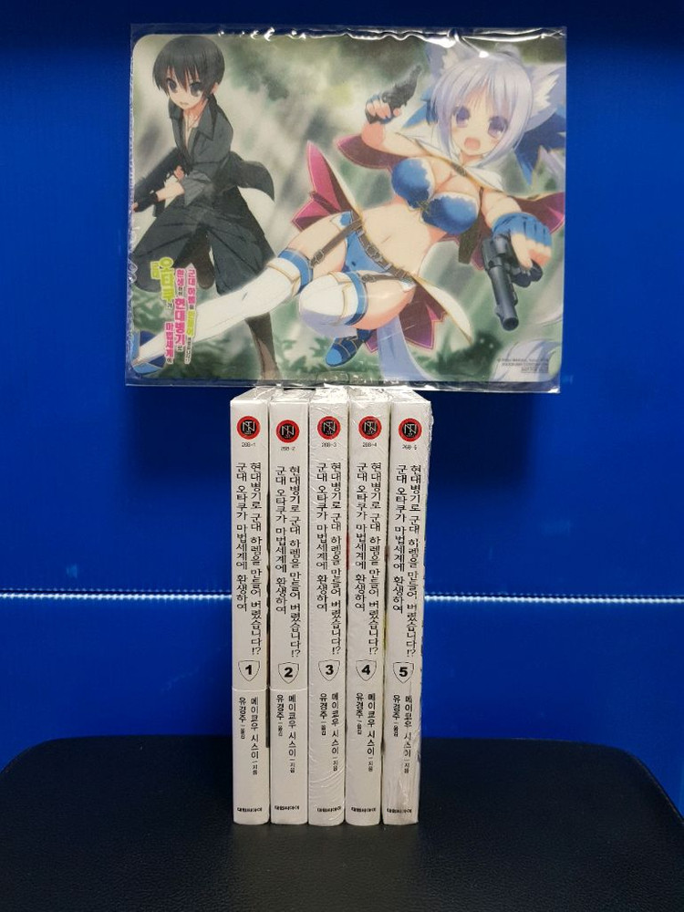 미개봉 초판 군대 오타쿠가 마법세계에 환생해서 현대병기로 군대 하렘을 만들어 버렸습니다!? 라노벨 1권-5권 일괄판매 합니다 소장용으로 구입해서 모두 미개봉에 초판입니다 마우스패드는 온라인 서점 한정 포인트로 구매를 한 특전입니다 직거래, 택배거래 둘 다 환영하며 직거래시에는 서울 7호선 신대방삼거리역만 가능합니다 택배거래시 우체국 택배를 이용하며 택배비는 5천원 추가해 주시면 되고 다른 책과 함께 구입시에는 택배비는 중복으로 받지 않습니다 입금 확인후 다음날 (주말, 휴일제외) 발송해 드리며 배송 중 파손 면책 동의하에 거래합니다 실물 사진 요청하시면 쪽지와 같이 찍어서 보내 드리며 대답이 늦을수도 있는데 문자 보는대로 연락 드릴게요