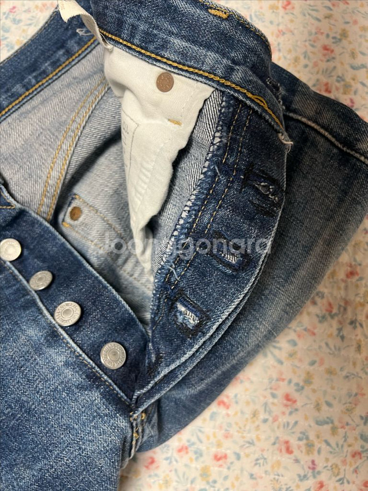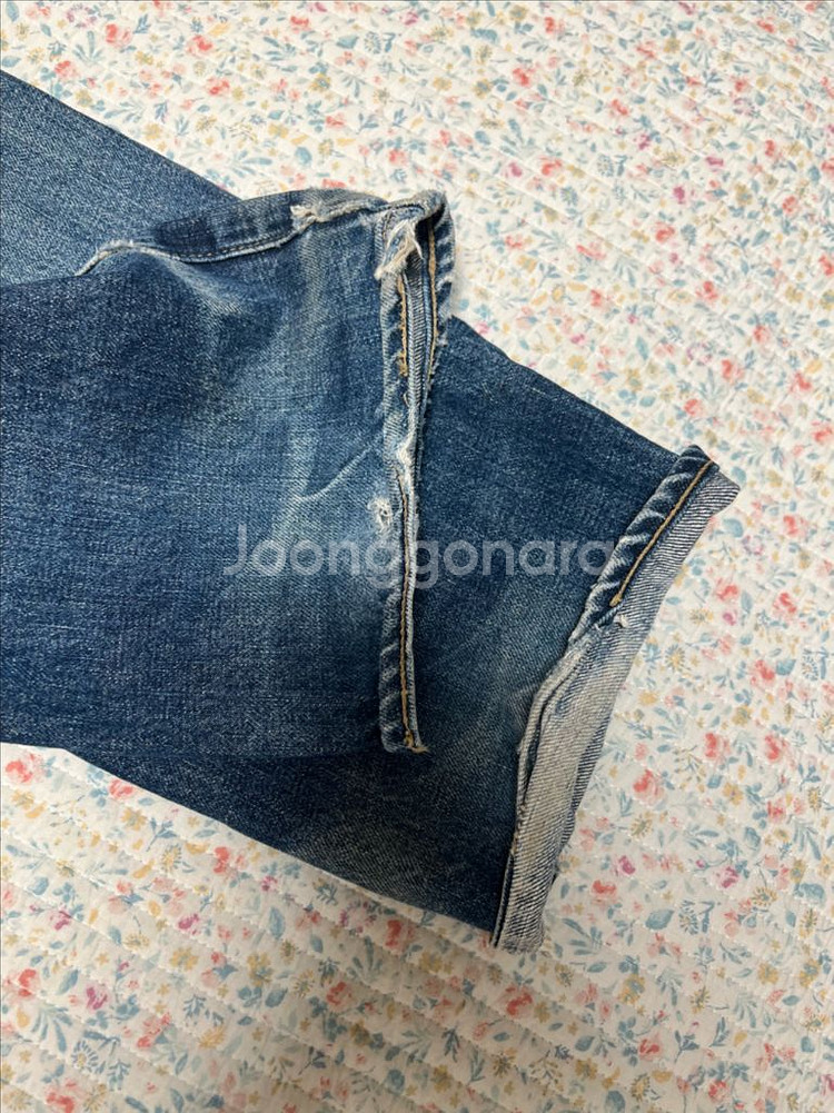 풀카운트 피어 오브 다크, RRL 뺨 치는 워싱. 리얼 빈티지 예술입니다. 빈티지 버튼플라이 데님들 고질병인 단추 구멍 헤짐도 수선집에서 모두 손 봤어요. 허리 37.5-38cm 허벅지 30.5 총장 100.5 밑단 21