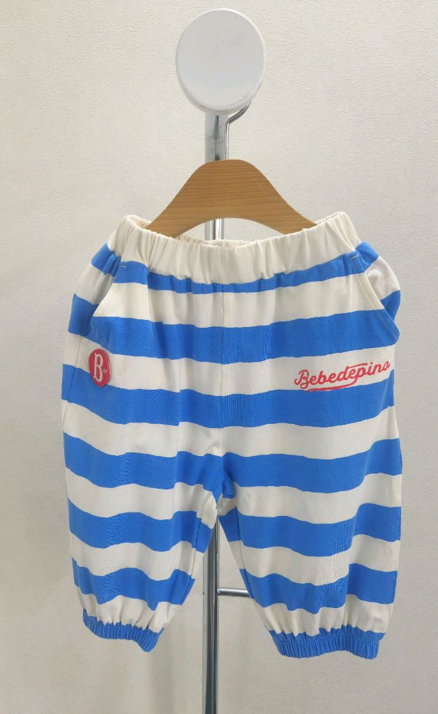 베베드피노 블루 & 화이트 스트라이프 팬츠입니다😊 귀여운 디자인으로 편안하게 입기 좋아요❤️